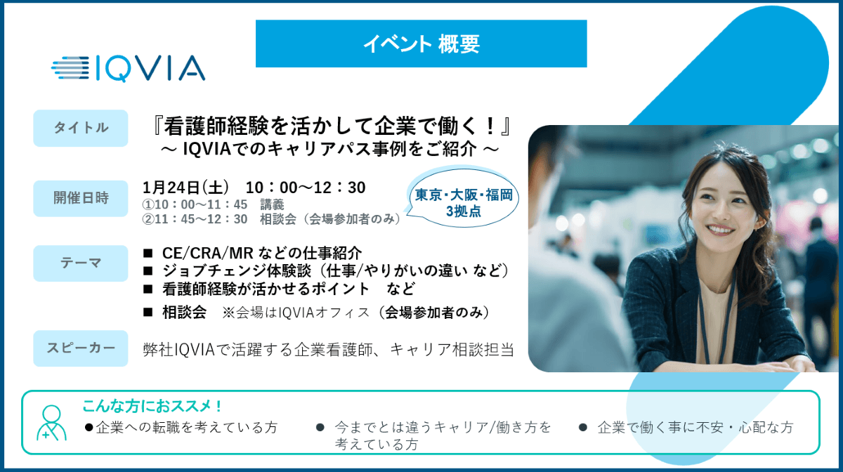 大好評企画「IQVIAでのキャリア紹介シリーズ」を3拠点同時開催!
